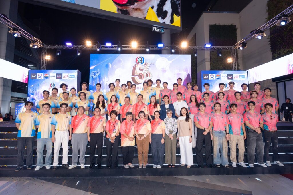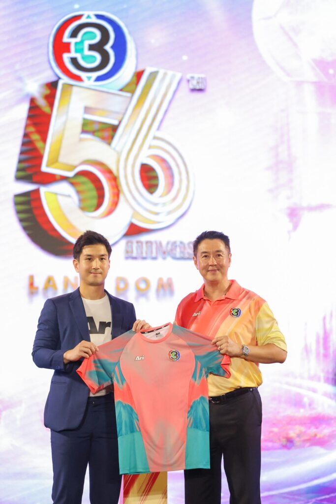ต่อด้วยมหกรรมความบันเทิงฉลองครบรอบ 56 ปี ช่อง 3 ที่ทุกคนรู้กันดีว่าต้องมีกับแมตช์ฟาดแข้ง และปีนี้ได้รับการสนับสนุนเสื้อกีฬาและลูกฟุตตบอลจาก ARI ก่อนจะมาแรนด้อมเลือกสี ซึ่งปีนี้แบ่งเป็นสีชมพูพั้นซ์กับสีเหลืองขมิ้น หลังจากแรนด้อมเลือกกัปตันและผู้จัดการทีมเรียบร้อย ก็ต้องเซอร์ไพรส์ไม่หยุด เมื่อนางเอกสาว เชอรี่ เข็มอัปสร มารับหน้าที่เป็นผู้จัดการครั้งแรก และในที่สุดปีนี้สีชมพูพั้นซ์เป็นทีมของ กัปตันโป๊ป ผู้จัดการทีม แอน ทองประสม และ เก้า นพเก้า พร้อมด้วย เจมส์ มาร์, ภณ ณวัสน์, สมิธ ภาสวิชญ์, แก๊ป จักริน, จ็อบ ธัชพล, เซ็นต์ ศุภพงษ์, อู๋ กิตติภณ, อ๋อง สิทธานต์, เฟรนด์ พีระกฤตย์, แชมป์ ชนาธิป, เฟิสท์ เอกพงศ์, ทาฆิ, ดีแลน ไบร์อันท์, คิง ณภัทร, แจ็ค จักรพันธ์ ฯลฯ ทางฝั่งสีเหลืองขมิ้น ได้แก่ กัปตันเกรท ผู้จัดการทีม เชอรี่ และ กลัฟ คณาวุฒิ พร้อมด้วย มีน พีรวิชญ์, ไมกี้ ปณิธาน, ริว วชิรวิชญ์, จูเนียร์ กาจบัณฑิต, ฟลุ๊คจ์ พงศภัทร์, ดีเจพุฒิ, สิงโต สกลรัฐ ฯลฯ เตรียมาส่งเสียงเชียร์ และมาร่วมเป็นส่วนหนึ่งของความยิ่งใหญ่ ในวันเสาร์ที่ 4 เมษายนนี้ ณ สนามศุภชลาศัย หรือรับชมถ่ายทอดสด ตั้งแต่เวลา 18.00 – 22.30 น. ผ่านหน้าจอ ช่อง 3